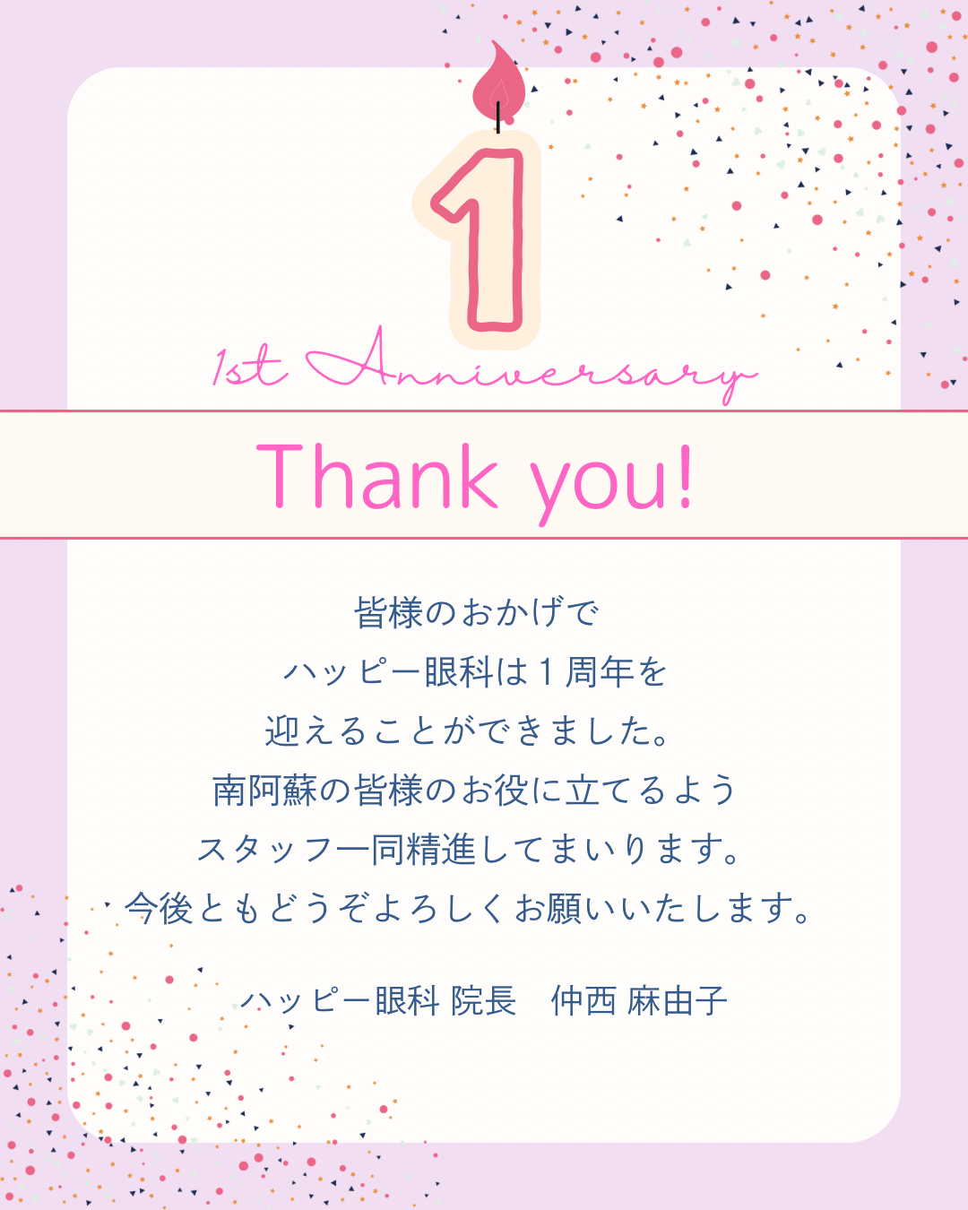 皆様のおかげでハッピー眼科は1周年を迎えることができました。